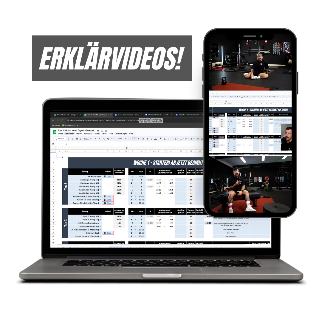 Mit Rise N Grind 3.0 haben wir es uns zur Aufgabe gemacht ein Baukasten-ähnliches Trainingssystem anzubieten, mit dem du dein Trainingsjahr strukturieren kannst! Dabei wollen wir dir möglichst viele Entscheidungen abnehmen und trotzdem einen individualisierbaren Plan ermöglichen, damit du das beste Training bekommst!